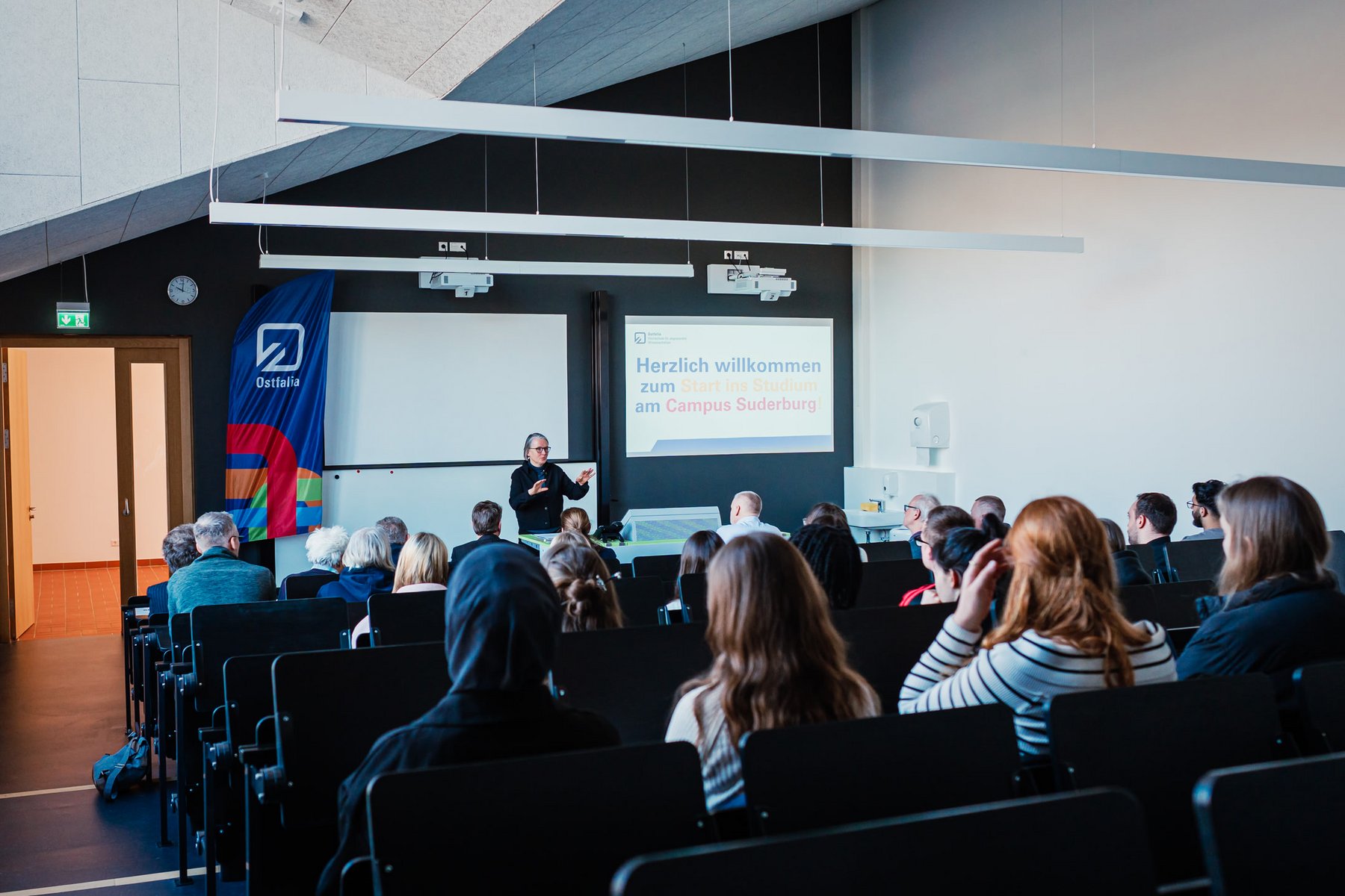 Die neuen Studierenden werden an den verschiedenen Campus-Standorten von den Vizepräsident*innen der Ostfalia begrüßt – nicht mit steifen Floskeln, sondern mit inspirierenden Gedanken. Zum Beispiel, dass Studium nicht nur heißt, Leistungspunkte zu sammeln, sondern vor allem auch, sich auszuprobieren – fachlich und persönlich. Zukunftsthemen, die unsere Gesellschaft prägen werden, zu entdecken, den eigenen Standpunkt dazu entwickeln, darum geht's an der Ostfalia.